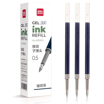 得力(deli)臻顺滑按动中性笔替芯0.5mm子弹头 S01/S08/1008/K35适用同G-5 墨蓝20支/盒 6906H