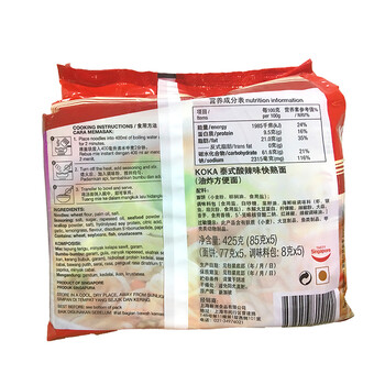 新加坡KOKA可口泰式酸辣味快熟面袋装425g(85g*5包)