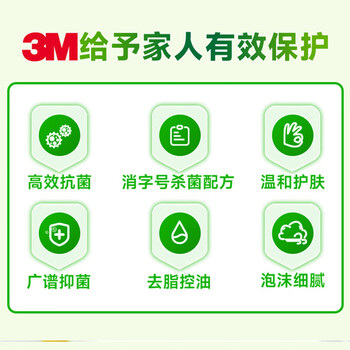 3M抗菌除菌洗手液瓶装便携家用洗手液儿童学校工厂餐厅清香型520g洗手液*1瓶