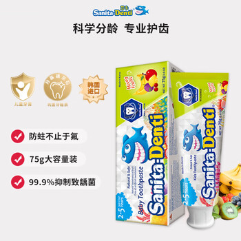 sanita-denti韩国进口莎卡儿童牙膏75g 婴幼儿宝宝不含氟3-6岁吞咽木糖醇
