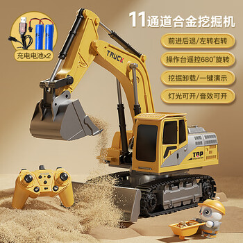 礼盒装--11通2.4G遥控合金挖掘机-充电锂电池2组+遥控电池