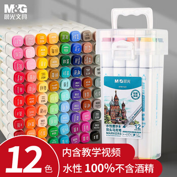 晨光(M&G)文具12色水性马克笔 双头无异味方杆盒装水彩笔 学生美术专用儿童绘画画笔 APMV1429