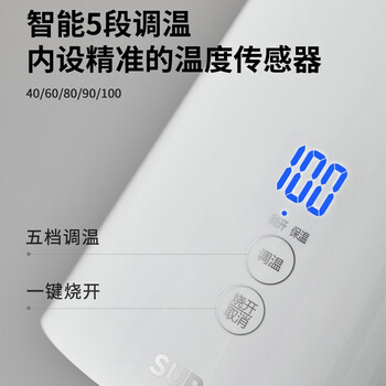 苏泊尔 SUPOR C 电水壶1.5L五段温控 实时温显 便携式触控温度 一键开盖 双层保温防烫SW-15J68A