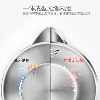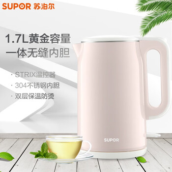 苏泊尔(SUPOR)电水壶双层防烫304不锈钢大容量家用保温电热水壶烧水壶1.7L STRIX温控器SW-17T58A