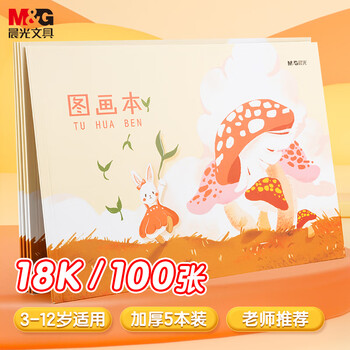 晨光(M&G)文具图画本儿童画画本绘画本美术本小学生幼儿园一年级18k蘑菇兔5本生日礼物