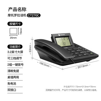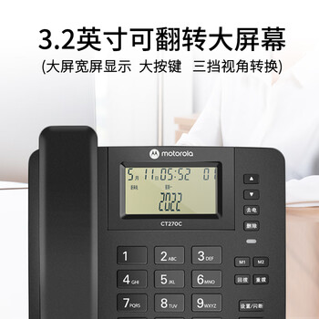摩托罗拉(Motorola)电话机座机固定电话 三档翻转大屏幕 一键拨号 办公家用 领导经理电话 CT270C(黑色)
