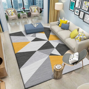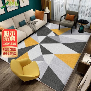 梦蜓水晶绒客厅地毯 亲肤舒适耐脏防滑 几何黄 现代简约 200*300cm