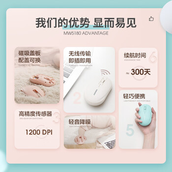CHERRY樱桃 MW5180无线蓝牙鼠标 双模两用 笔记本电脑鼠标 轻音鼠标 便携办公鼠标 皓月白