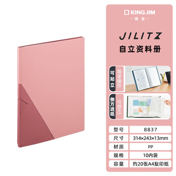 锦宫(King Jim)自立资料册文件夹可站立A4商务办公横向式插页/20袋8837-粉色