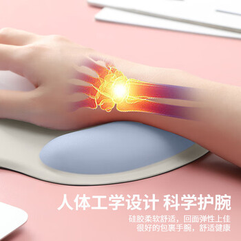 必优美 护腕女手腕垫手托创意简约笔记本电脑鼠标腕托防滑鼠垫护手护腕硅胶鼠标垫男 灰白+蓝