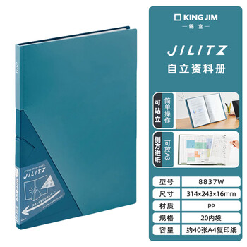锦宫(KINGJIM)自立资料册文件夹乐谱可站立A4商务办公横向式插页/40袋蓝色8837W