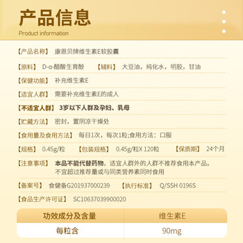 康恩贝 维生素E软胶囊 0.45g/粒*120粒 维生素e VE 维e胶囊