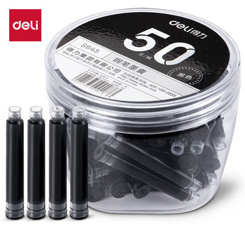 得力(deli)钢笔墨囊 学生钢笔墨水笔墨囊 可替换 50支/盒大包装S645黑