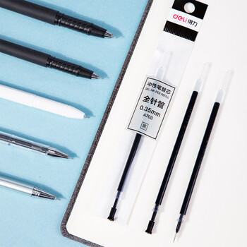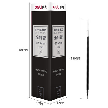 得力(deli)【热门商品】0.35mm全针管黑色中性笔笔芯 水笔签字笔替芯20支/盒