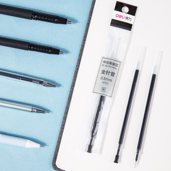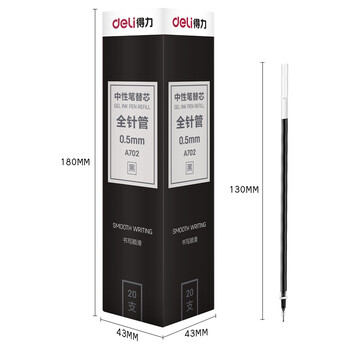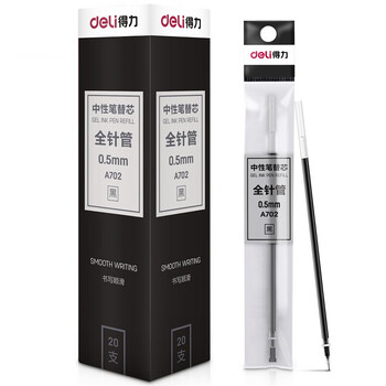 得力(deli)【热门商品】0.5mm全针管拔帽中性笔笔芯 学生办公水笔签字笔替芯 黑色20支/盒 A702