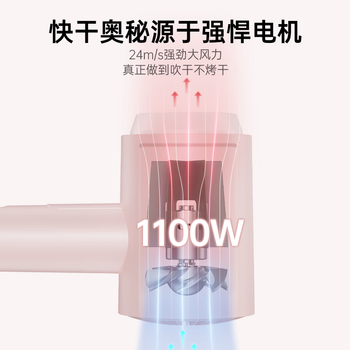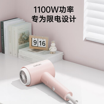 康夫(CONFU)电吹风机家用学生宿舍专用1100w小功率速干护发冷热风小型便携折叠吹风筒KF-3152初樱粉