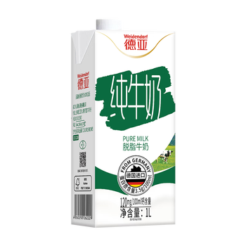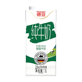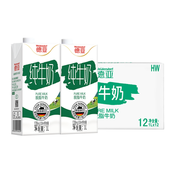 德国原装进口牛奶 德亚(Weidendorf)脱脂纯牛奶 1L*12盒 整箱装(新老包装随机发货)