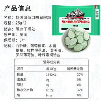 渔夫之宝 特强润喉糖果特强薄荷味25g*2袋
