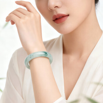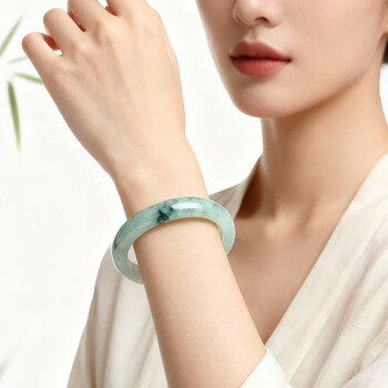 以心参玉【礼物】A货翡翠手镯 糯冰飘花女款玉镯子 送女友 附证书