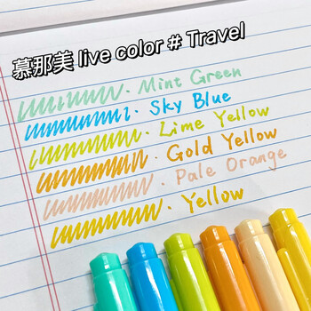 慕那美(monami)双头水性纤维笔学生涂鸦手绘笔彩绘水彩笔手账勾线笔6色套装Travel04035Z06-T水彩笔