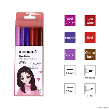 慕那美(monami)双头水性纤维笔学生涂鸦手绘笔彩绘水彩笔手账勾线笔6色套装SweetGirl04035Z水彩笔