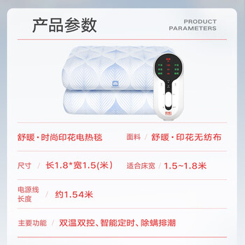 彩虹电热毯蓝白叶纹1.8*1.5米