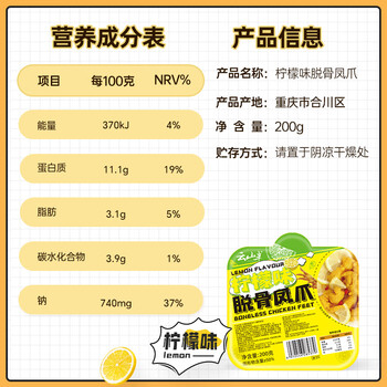 云山半 无骨鸡爪柠檬味200g 盒装 酸辣泡椒脱骨剔骨去骨凤爪 下酒菜小吃