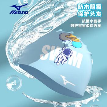 美津浓(MIZUNO)儿童泳帽女硅胶不勒头可爱专业防水护耳印花游泳帽N2CW2S12粉白兔