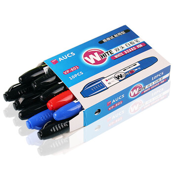 AUCS易擦耐用型双头白板笔,一头粗头、一头细头,10支装(7黑色、2蓝色、1红色)。纤维笔头耐磨、不易变形、方便快捷、使用舒适。
