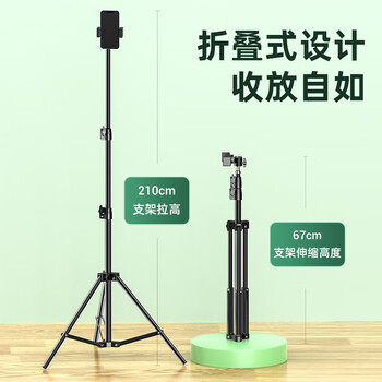 毕亚兹【2.1米】手机支架落地直播三脚架 自拍杆网红主播站立式 桌面便携户外伸缩折叠固定三角支撑架B43