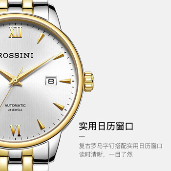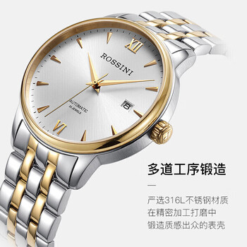 罗西尼(ROSSINI)手表男手表女 情侣手表商务国表机械表白盘钢带517773/517774