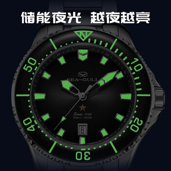 海鸥(SEAGULL)手表男士自动机械表 海洋pro男士手表生日礼物潜水表1213(黑40mm)