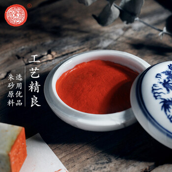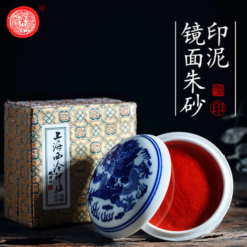 【全网低价,真便宜直播间】荣宝斋上海西泠印社潜泉印泥 文房四宝书法绘画篆刻印章古法手工红色陶瓷锦盒书画印泥青花镜面朱砂印泥60克