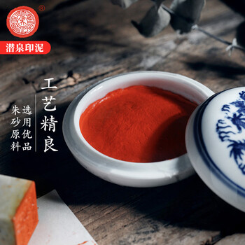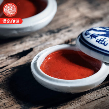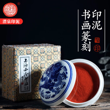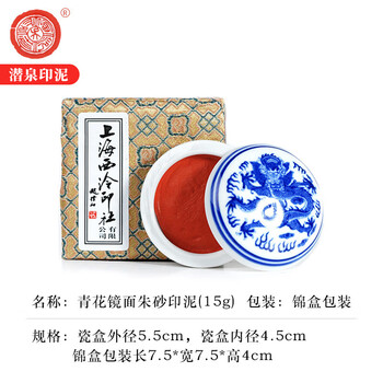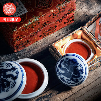 【全网低价,真便宜直播间】荣宝斋上海西泠印社潜泉印泥 文房四宝书法绘画篆刻印章古法手工红色陶瓷锦盒书画印泥青花镜面朱砂印泥15克