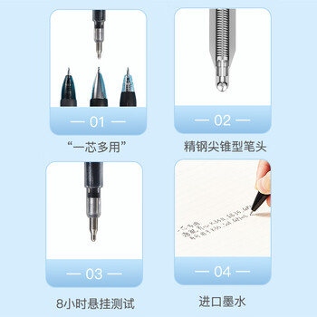 齐心(Comix)速干按动中性笔替芯ST尖精钢尖锥头笔芯 0.5mm黑 20支装 R511