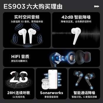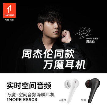 万魔(1MORE)ES903真无线蓝牙耳机 Aero智能深度降噪空间音频 入耳式音乐耳机适用华为小米苹果周杰伦代言 钛黑