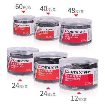 齐心(COMIX) 黑色易分类长尾夹/长尾票夹 黑色长尾夹 筒装 黑色25mm-48只 B3628