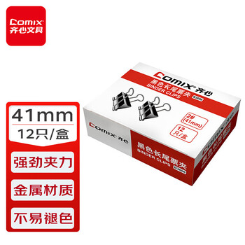 齐心(Comix)黑色长尾夹票夹 大号41mm金属燕尾夹票据夹子 12只/盒 B3606