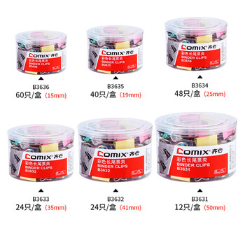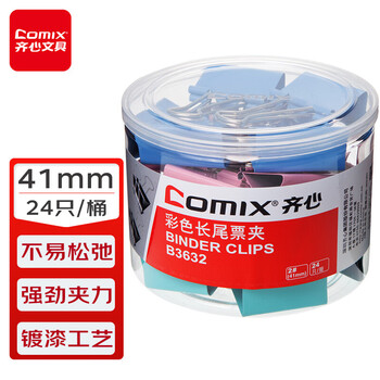 齐心(Comix)长尾夹/燕尾夹/票夹 彩色金属 2#41mm 24只/筒 办公用品 工具 B3632