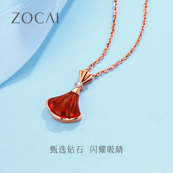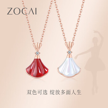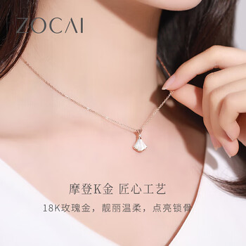 佐卡伊钻石吊坠玫瑰18K金白母贝扇形小裙子百搭生日礼物 D07030