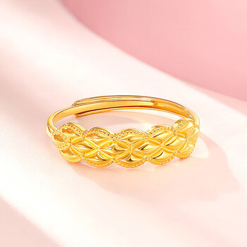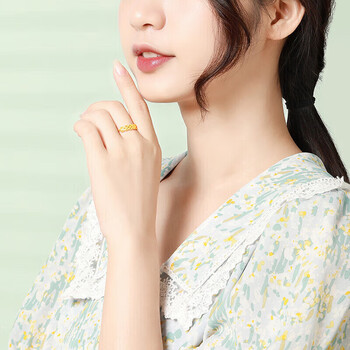 梦金园 18K金戒指彩金750麦穗戒指小香风食指活口戒女款生日礼物