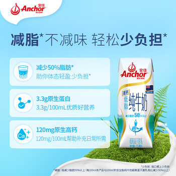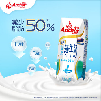安佳(Anchor)低脂高钙牛奶 250ml*24盒 新西兰原装进口草饲减少50%脂肪
