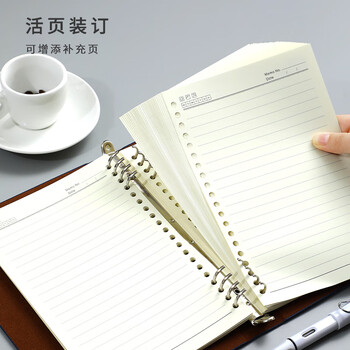 嘉然恒 活页本A5商务办公笔记本子高颜值简约加厚不咯手活页记事本可替换活页纸内芯会议记录本可定制 棕色