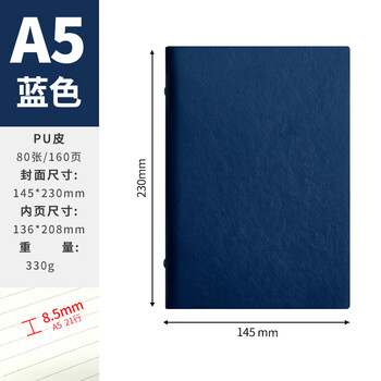 嘉然恒 活页本A5商务办公笔记本子高颜值简约加厚不咯手活页记事本可替换活页纸内芯会议记录本可定制 蓝色