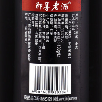即墨老酒 经典八年 甜型 北方黄酒 730ml 单瓶装 黍米酒
