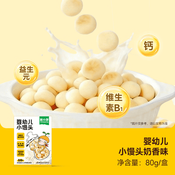 窝小芽婴幼儿小馒头奶香味 宝宝零食 婴幼儿饼干奶豆无添加蔗糖80g 8M+