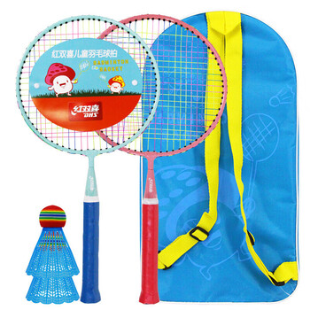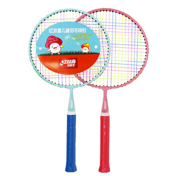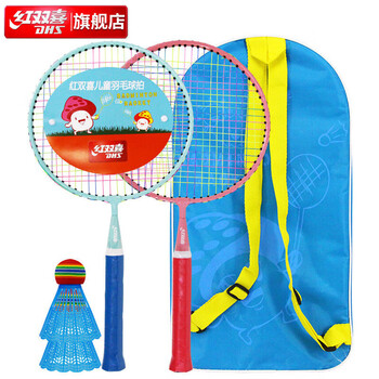 红双喜(DHS)儿童羽毛球拍大头拍幼儿园亲子双拍玩具套装DT501蓝粉(含拍包/球)