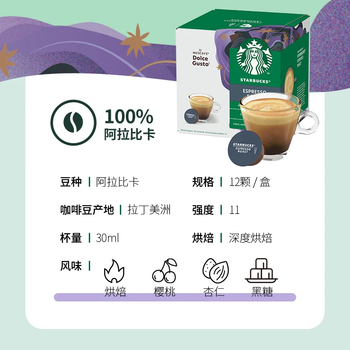 星巴克(Starbucks)胶囊咖啡意式浓缩5.5g*12颗 重烘美式黑咖啡 适用多趣酷思咖啡机