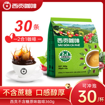 西贡越南进口二合一无蔗糖速溶咖啡粉360g(12gx30条)