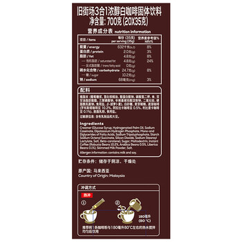 马来西亚进口 旧街场(OLDTOWN)咖啡 浓醇白咖啡三合一 咖啡速溶冲调饮品盒装1400g(35g*40条)*1